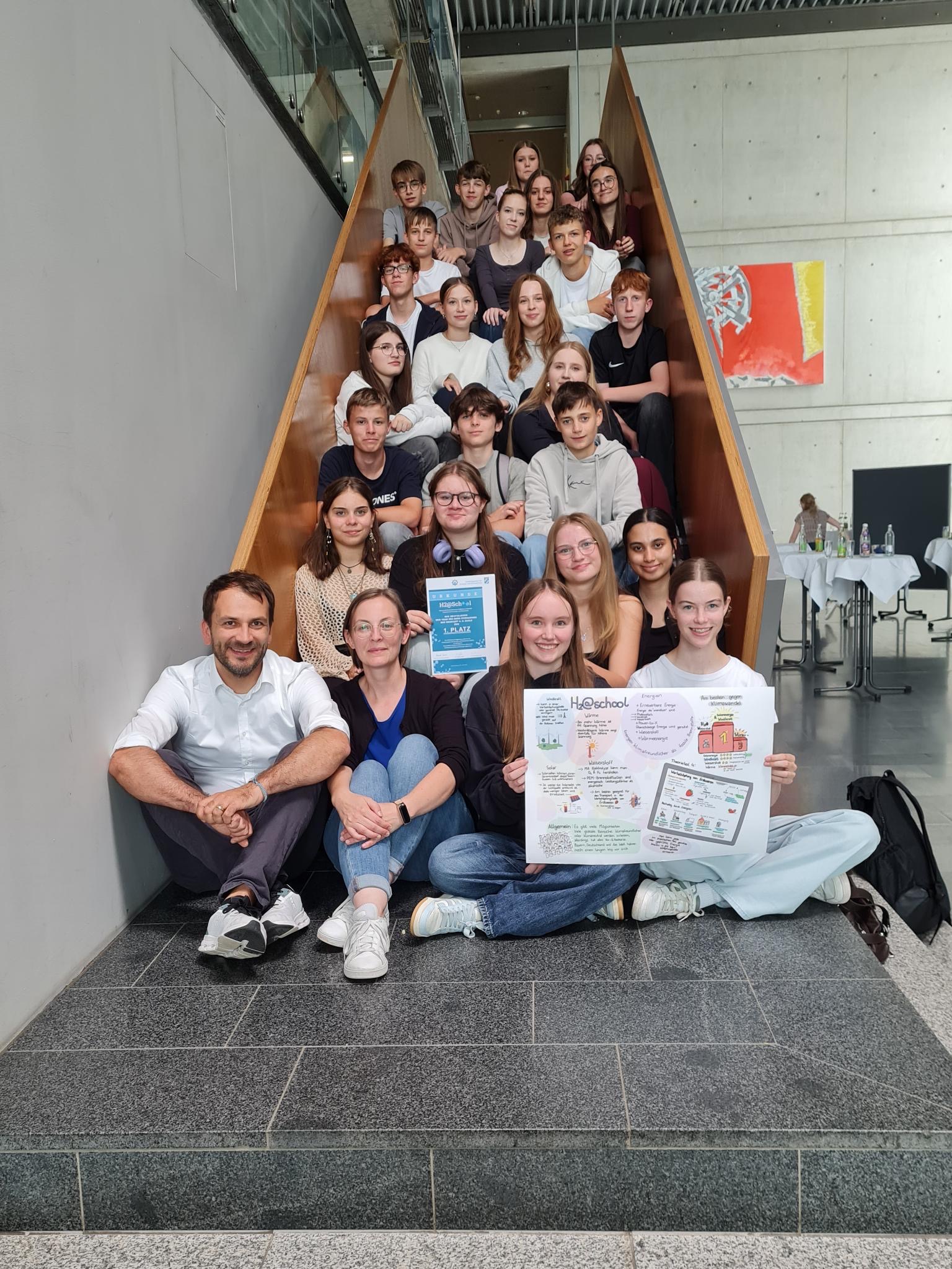 Die Schülerinnen und Schüler der Klasse 9b des Rhön-Gymnasiums Bad Neustadt a.d. Saale haben im bayernweiten Wettbewerb H2@School im Jahr 2025 den 1. Platz erreicht. Der Wettbewerb, der vom Bayerischen Staatsministerium für Wirtschaft, Landesentwicklung und Energie initiiert wurde, zielt darauf ab, junge Menschen für die Zukunftstechnologie Wasserstoff zu begeistern.