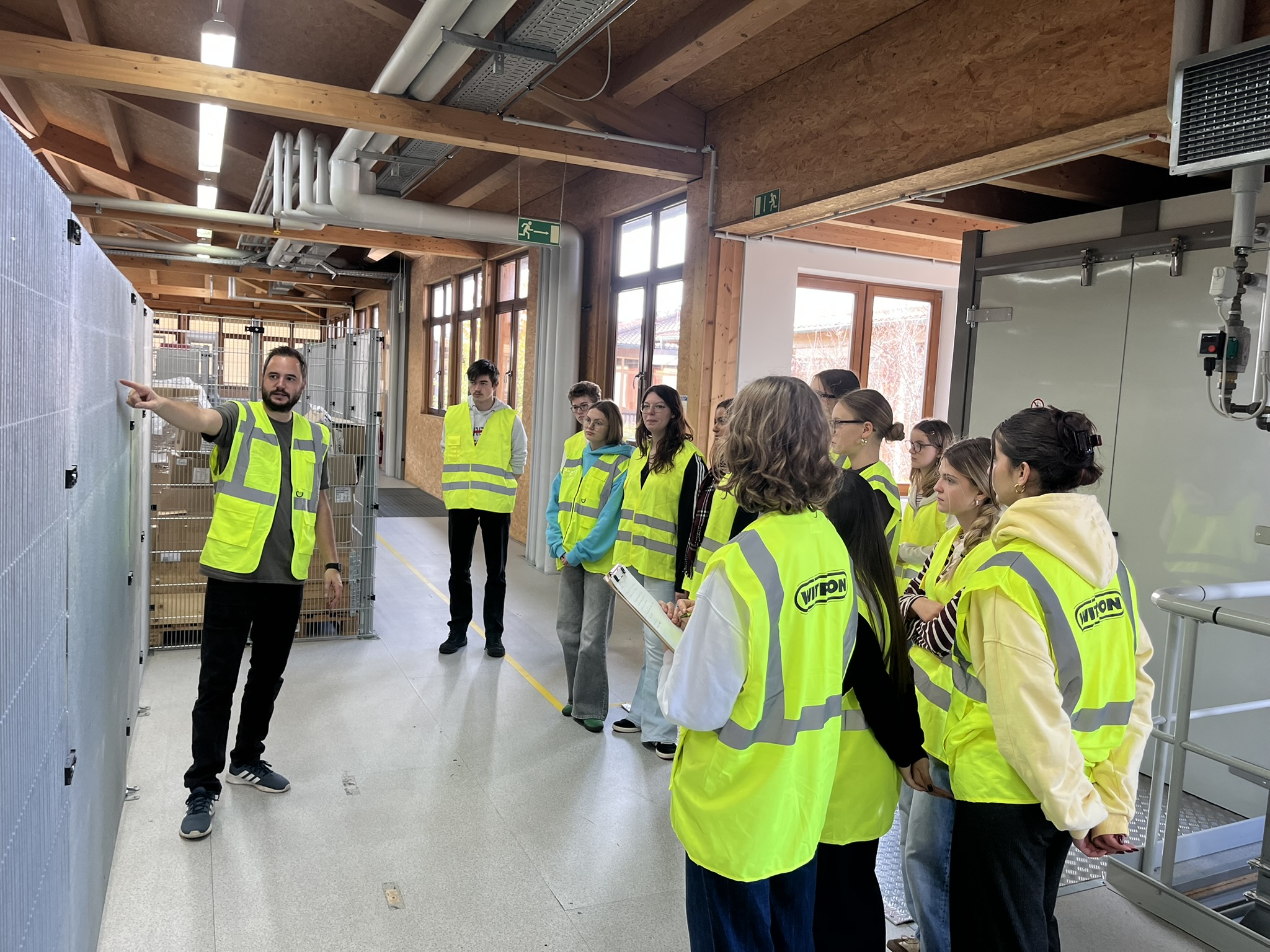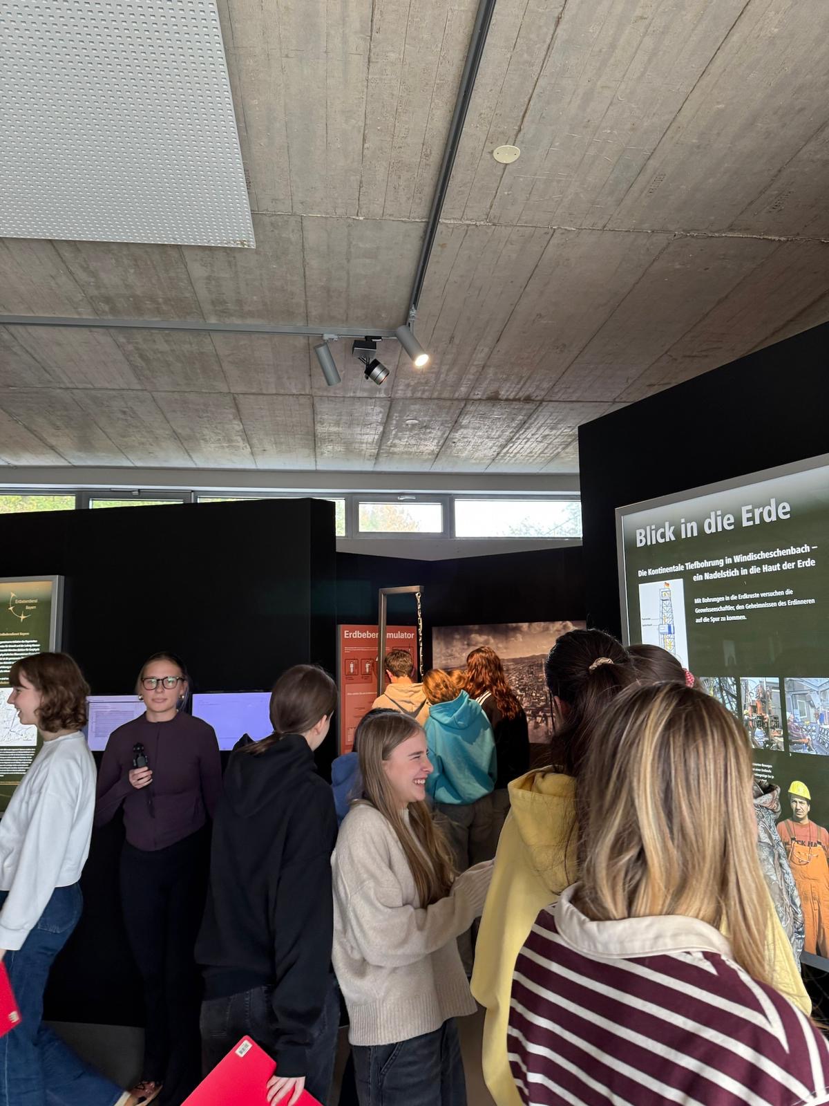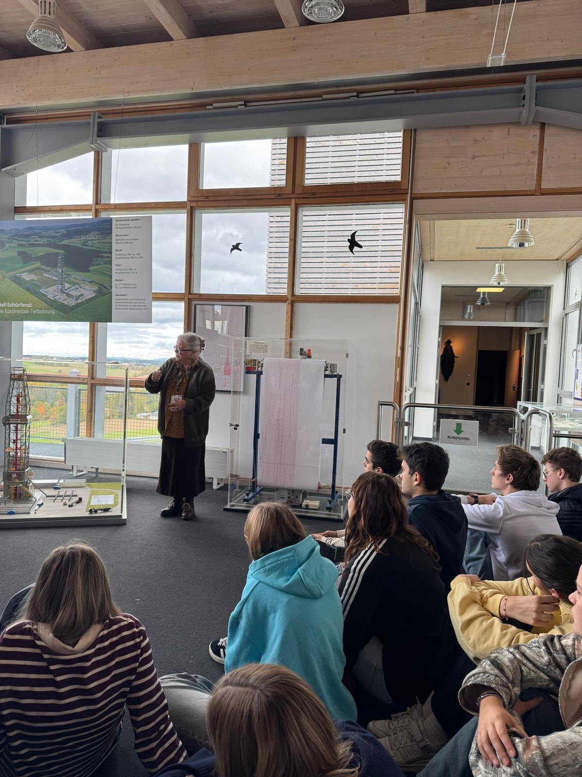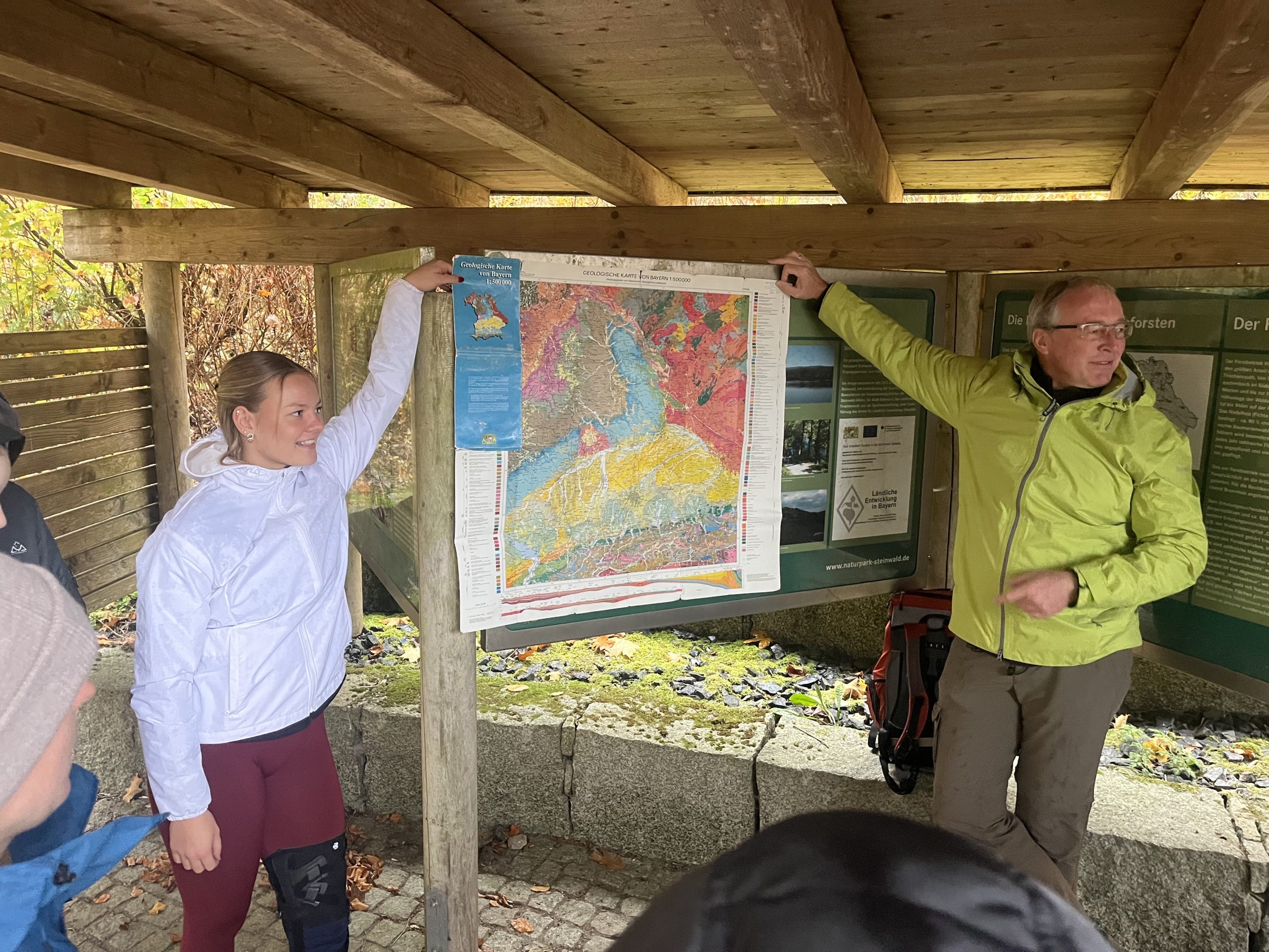Am zweiten Tag bekam die Gruppe des Leistungsfachs bei einer Firmenführung bei WITRON in Parkstein Einblicke in ein global wirtschaftendes Unternehmen. Das gute Betriebsklima dort übertrug sich besonders bei der ausgiebigen Verköstigung direkt auf die Teilnehmerinnen und Teilnehmer. Währenddessen bestimmte der Geologie-Kurs im Geozentrum an der KTB in einem Workshop ihre mitgebrachten Gesteinsproben. Man könnte sogar behaupten, dass sich so mancher mit seinem Gestein im regen Zwiegespräch befand. Bei einer anschließenden gemeinsamen Begehung des Bohrturms und einer großen Geländeexkursion rund um Windischeschenbach am dritten Tag waren die Oberstufenschülerinnen und -schüler wieder viel zu Fuß unterwegs und erfuhren, dass sie es dort meist mit Gesteinen aus dem Karbon zu haben – den Graniten des mitteleuropäischen Grundgebirges.