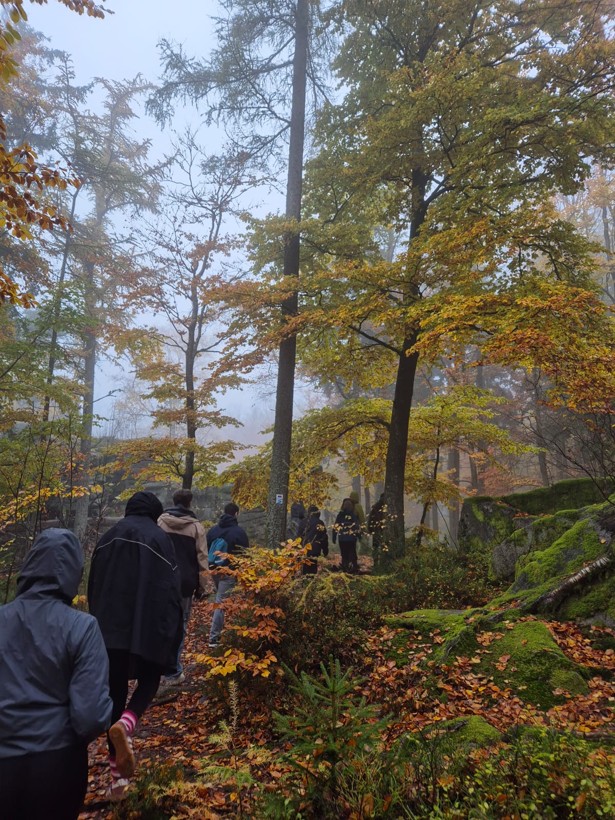 Gleich zwei Kurse der Jahrgangsstufe 13 des Rhön-Gymnasiums machten sich Mitte Oktober gemeinsam auf eine dreitägige geowissenschaftliche Exkursion: der Geologiekurs und das Geografie-Leistungsfach. Insgesamt 24 Schülerinnen und Schüler erkundeten mit ihren Lehrkräften Frau Deutscher und Herr Greubel die Fränkische Schweiz und die Oberpfalz – und hatten dabei nicht nur Steine im Blick.