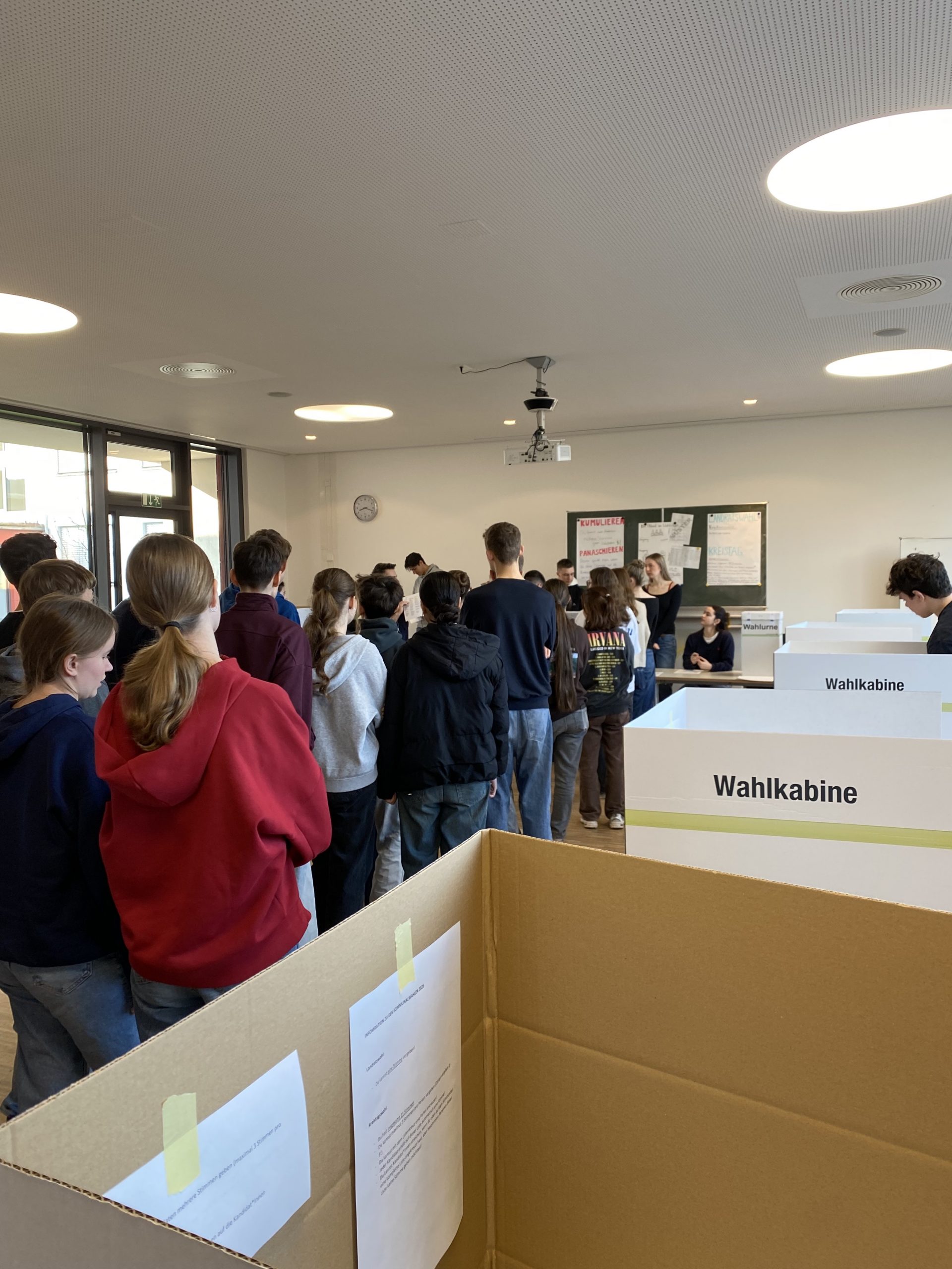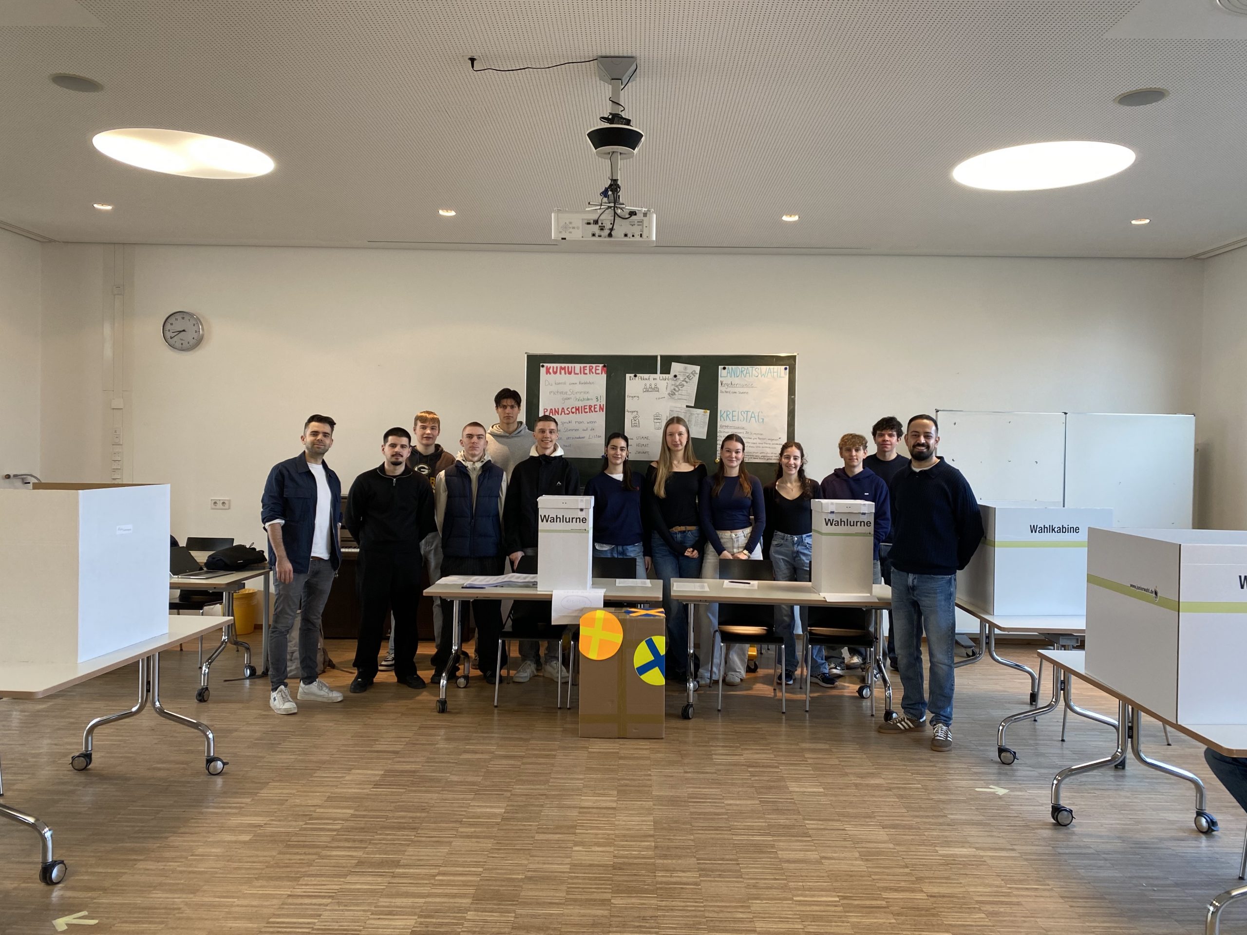 Drei Tage vor den offiziellen Kommunalwahlen konnten die Schülerinnen und Schüler der 10. bis 13. Jahrgangsstufe selbst an die Wahlurne treten und ihre Stimmen abgeben. Dabei standen – wie bei den echten Kommunalwahlen – gleich zwei Entscheidungen an: ein Stimmzettel für die Wahl des Landrats sowie ein eigener Wahlzettel für die Kreistagswahl.