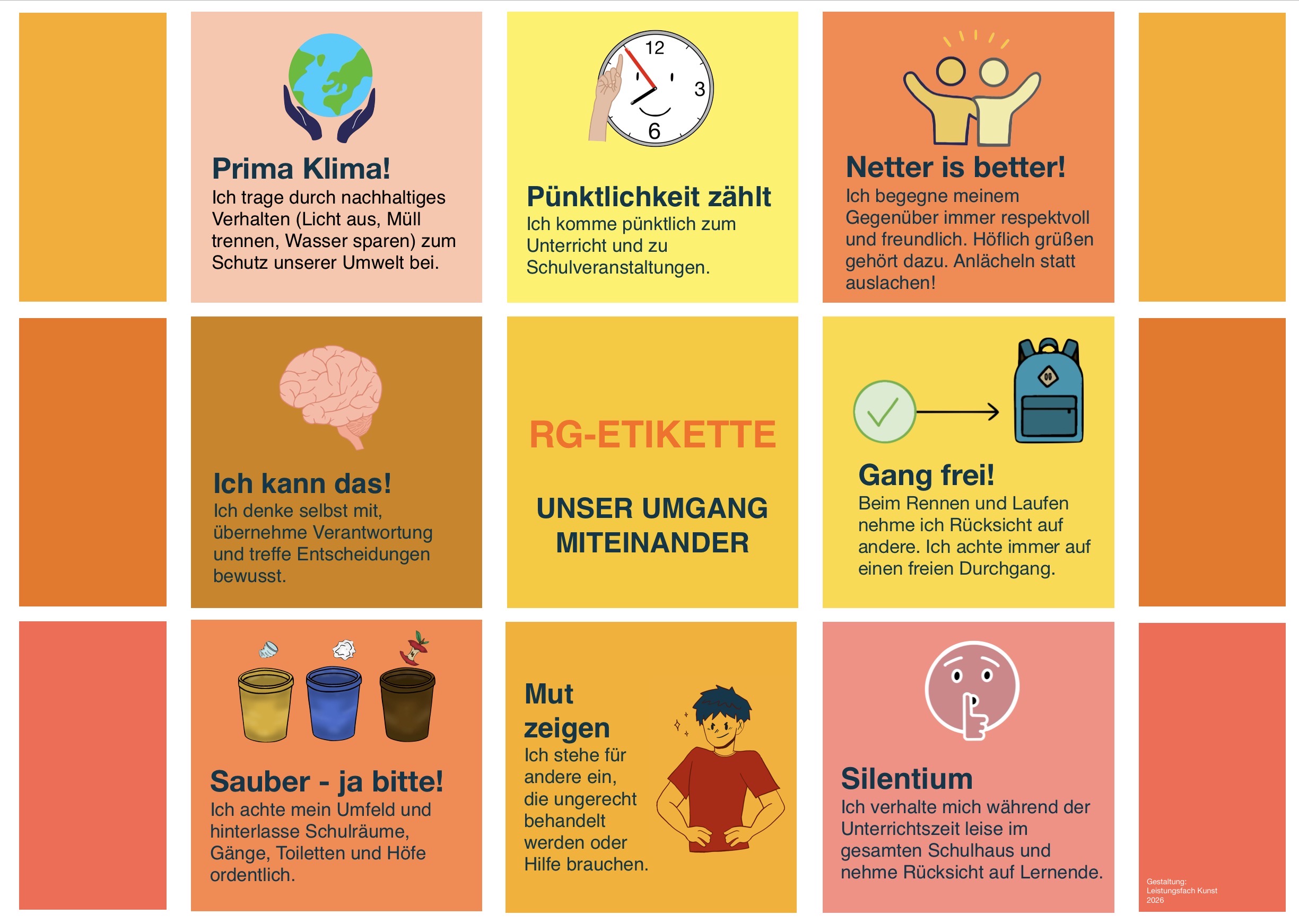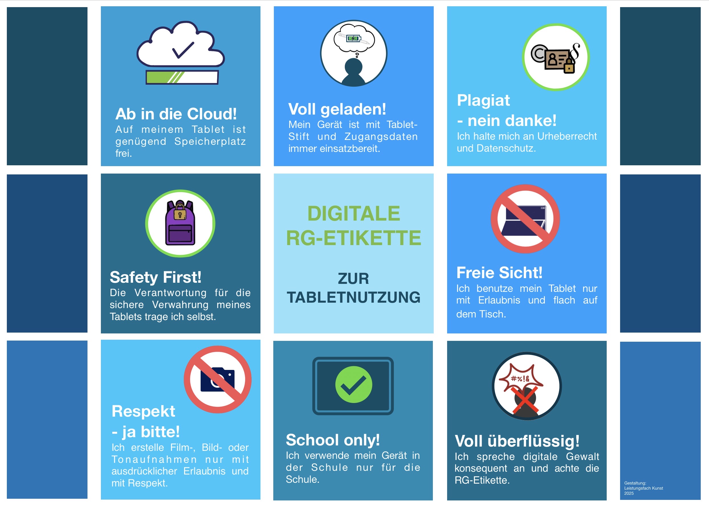 In diesem Zusammenhang haben wir zunächst ein „Konzept zur privaten Nutzung digitaler Endgeräte“ am Rhön-Gymnasium entwickelt und evaluiert und ergänzen dies 2026 im Rahmen unserer Schulentwicklungsziele durch unsere digitale RG-Etikette. Alle Gremien der Schule sind in diesen Prozess einbezogen, der für klare Nutzungsbedingungen digitaler Endgeräte im Schulhaus sorgt.